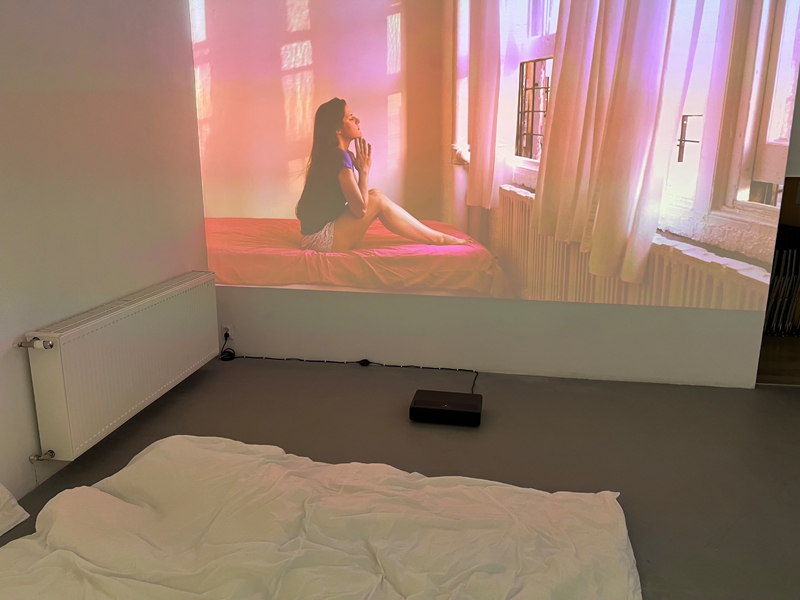 przyjaciółkę artystki w niemalże identycznym ułożeniu. Niuanse ruchu przypominają wiercenie się. Artystka subtelnie bada jej